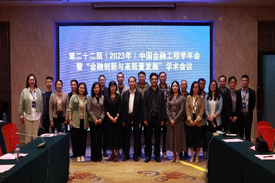 金融研究院院长原雪梅受邀参加第二十二届中国金融工程学年会暨“金融创新与高质量发展”学术会议。本次年会于2023年10月13日至14日在山东济南举行。在13日晚间举办的理事会会议上,原雪梅在前期书面申请基础上,现场汇报了我校相关学科专业建设情况。经理事会全体理事无记名投票,全票通过我校新增为常务理事会单位,原雪梅教授当选为常务理事。同时,山东大学、中山大学、辽宁大学、中南财经政法大学、西北大学、南京审计大学、浙江财经大学、上海外国语大学、广东外语外贸大学、江西财经大学、吉林财经大学等十余所高校成为中国金融工程学年会常务理事单位;另有两所高校获批理事单位。新增入会单位代表与年会创始人武汉大学叶永刚教授和本届承办方山东财经大学金融学院彭红枫院长合影留念。