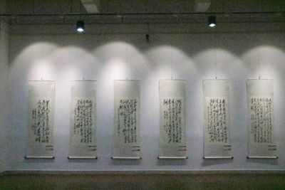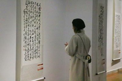 走进毛体书法精品展,一同追忆沧桑岁月。本项展览中,可看到舜道艺术馆展示墙上,悬挂的一首首气势磅礴的壮丽诗篇、一幅幅精美俊秀的书法作品,遒劲刚健,纵逸奔放,凝结着伟人先辈的思想结晶,饱含着中华民族的奋斗精神。同学们驻足欣赏、仔细阅读,回眸党的光辉历程,缅怀先烈英雄事迹,从字里行间回顾那段波澜壮阔的历史记忆。