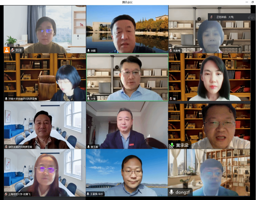 在上午主题报告阶段,南开大学徐鹤教授从水资源风险、生态风险及环境风险三方面阐述了黄河流域高质量发展风险防范新思路;中国社科院黄承梁教授就当前黄河流域生态保护和高质量发展问题提出相关战略思考;北京大学季曦教授从规模控制和结构优化两方面剖析了生态极限约束下地区层面实现可持续发展的可行路径;西安理工大学李鹏教授以三生系统耦合为理论前提,阐释实现水土保持与生态经济协同发展的创新模式;上海师范大学张翼飞教授立足农业视角,拓展出发展高效旱作农业等实现黄河流域农业高质量发展的路径;河海大学毛春梅教授就当前流域生态补偿的实施困境,阐述了生态效益转移与生态损失转移的流域补偿新思路;生态环境部环境规划院董战峰研究员倡导解决黄河流域突出生态环境问题,需遵循成本共担、效益共享、合作共治的协同思路;华北水利水电大学王富强教授综合运用EFAST算法及云模型,提出水资源承载力及耦合协调度评价方法,为区域水环境承载力提升提供科学有效的参考。济南大学绿色发展研究院廖显春院长及金融研究院原雪梅院长分别主持点评了两个模块的主题演讲,原雪梅做总结发言。