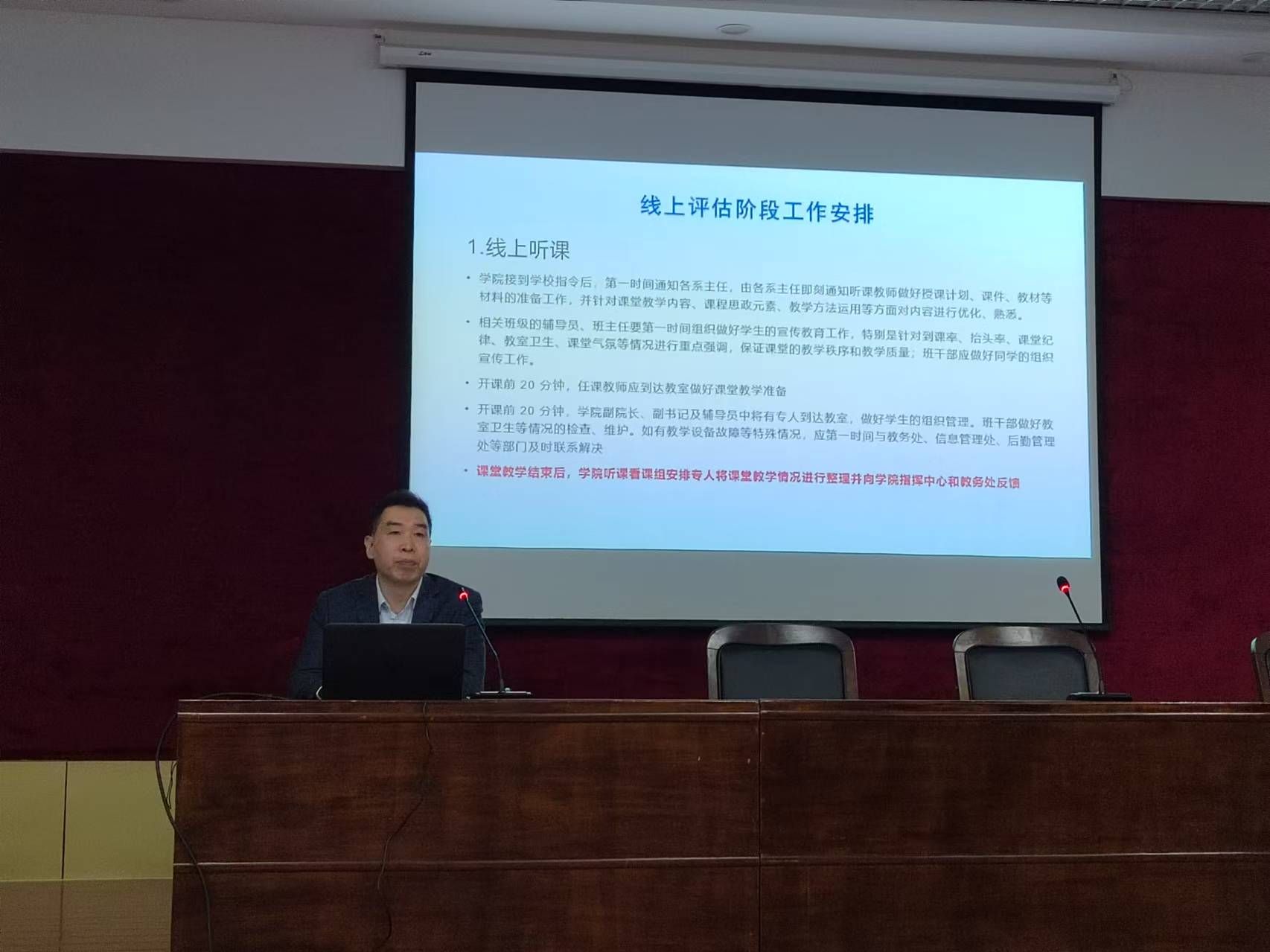 在经管楼报告厅召开学院本科教育教学审核评估推进会暨安全工作会议。学院领导班子成员、全体教职工出席会议,会议由真人棋牌