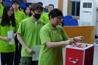 报告结束后,111名团员代表依次上前投票,采用等额选举的方式选举陈淑云、李天一为共青团欢乐棋牌真人版