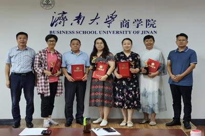 会上,彭亚宁书记和韦倩院长为学院获得2023-2024年度济南大学优秀教师优秀教育工作者、从教40年和从教30年教师颁发荣誉证书和奖杯,并同大家合影留念。