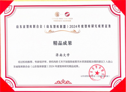 年会公布了山东智库联盟2024年优秀成果、优秀案例入选名单,以及由南京大学中国智库研究与评价中心对联盟成员单位2023年智库建设的第三方评估报告。济南大学山东龙山绿色经济研究中心选送张玉泽老师的《关于加强我省黄河水资源超载的建议》、田洪刚老师的《“两业”融合与新业态演化》两项成果分别入选年度精品成果及年度优秀成果。同时,山东龙山绿色经济研究中心也通过了第三方评估,被批准为“山东省智库联合会(山东智库联盟)会员单位”。