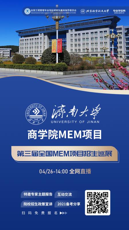 济南大学工程管理专业硕士(MEM,非全日制)进行专业调整后今年第一次招生,为了让考生更加全面、准确地了解济南大学MEM的招生情况,宣传济南大学MEM的办学特色,获取更好的生源质量,真人棋牌