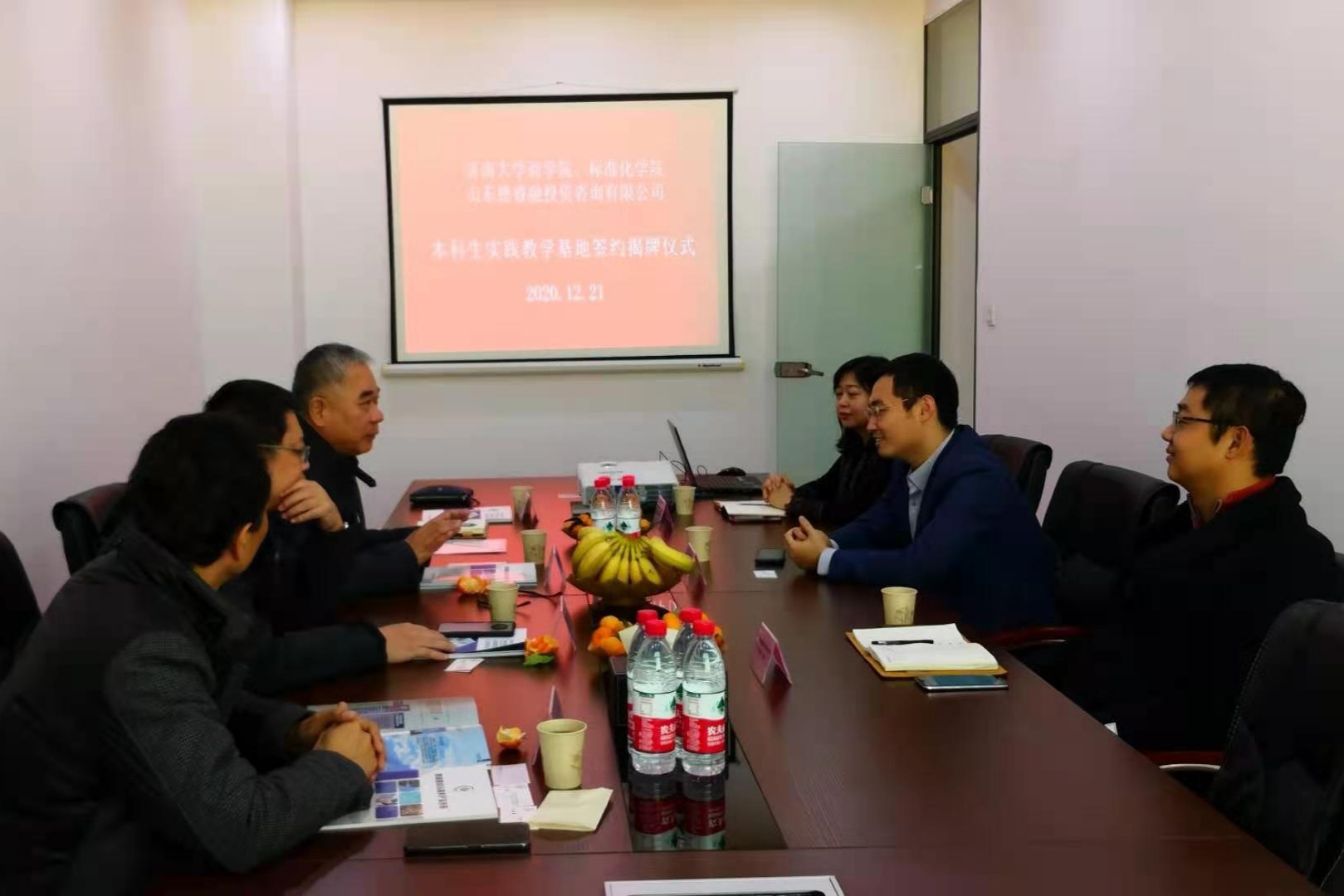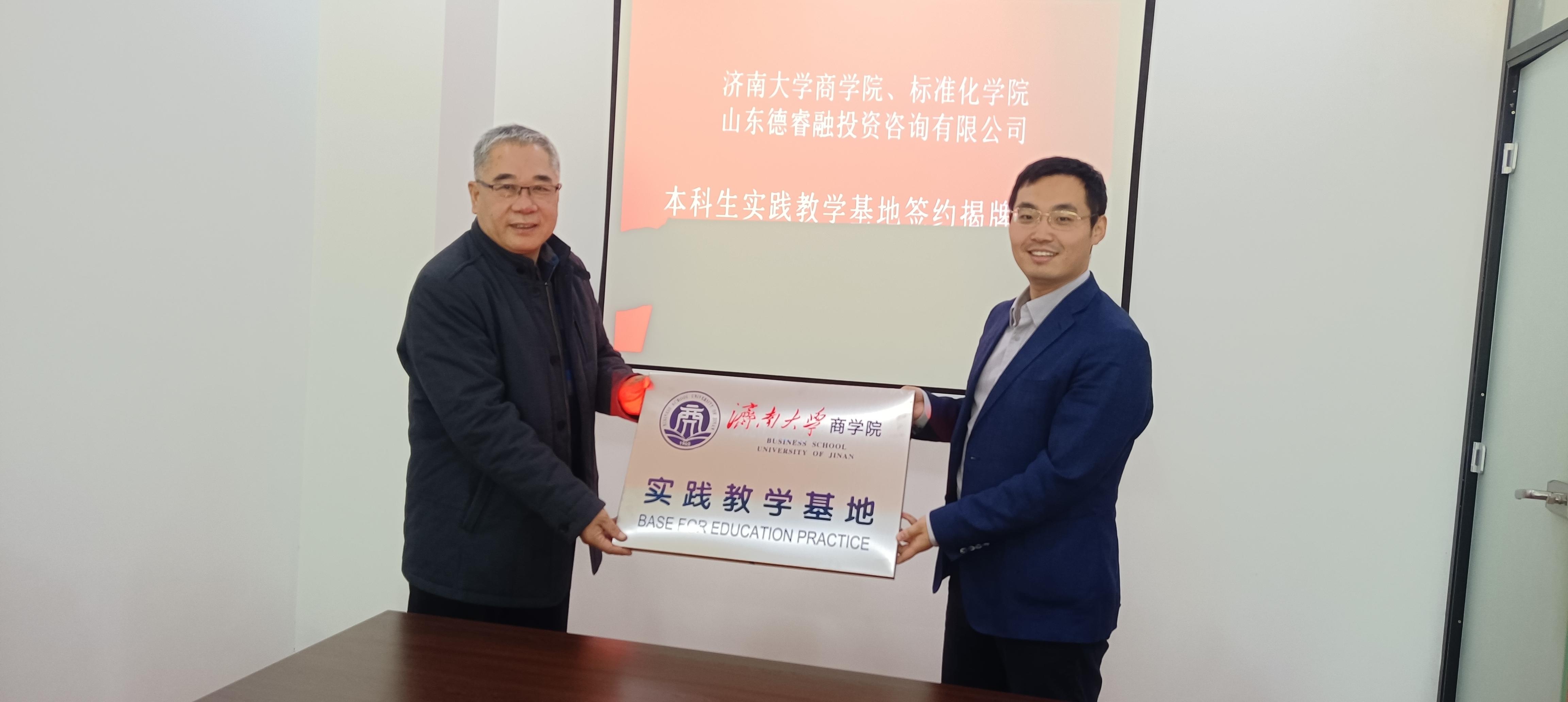 本科生实践教学基地签约挂牌仪式。山东德睿融投资咨询有限公司总经理孟栋、副总经理刘毅飞、副总经理王晓燕、欢乐棋牌真人版
