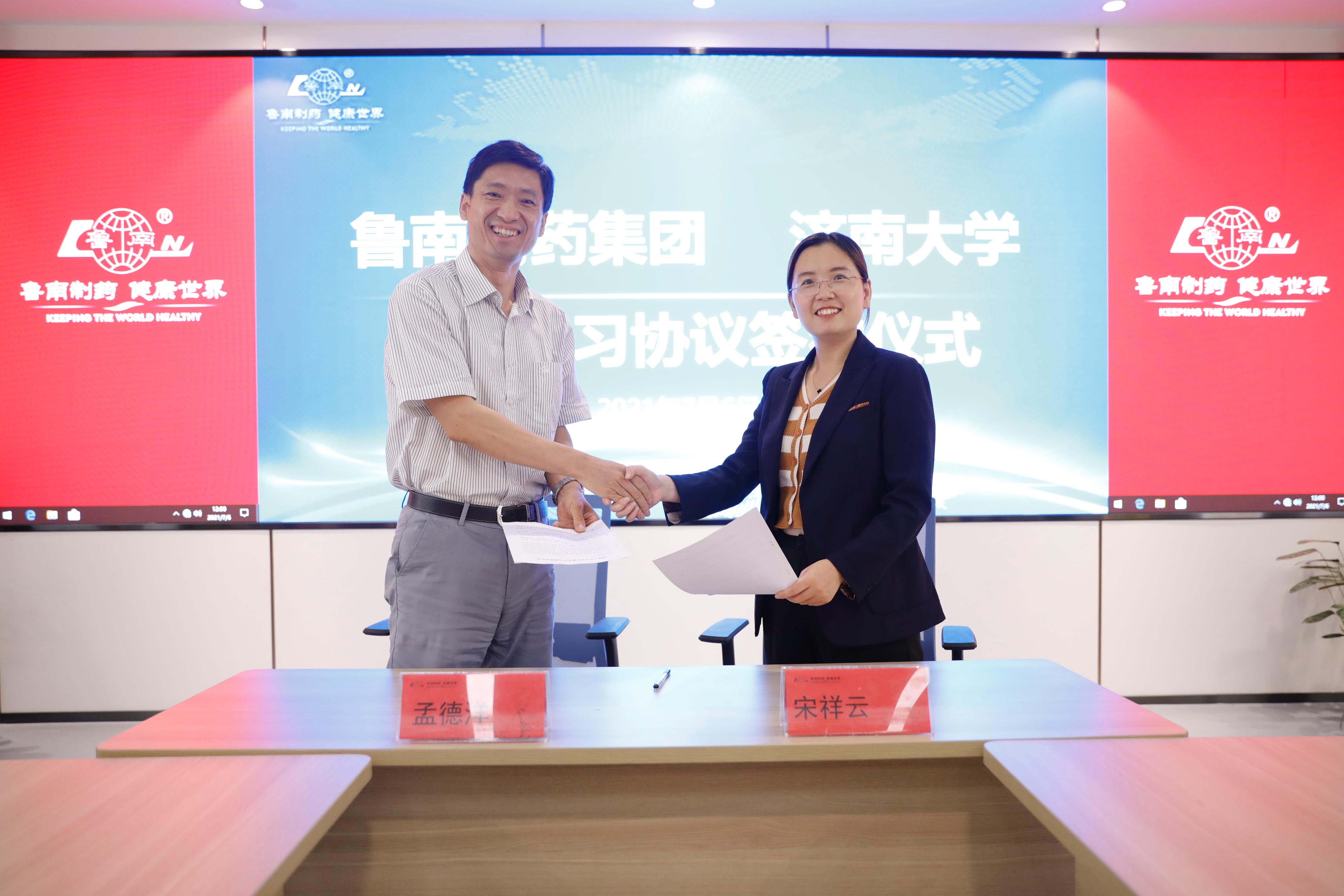 的来访表示热烈的欢迎,并高度评价了学院人才培养的质量。她介绍了鲁南制药集团的发展历程、经营宗旨、企业精神、战略目标,将“时代楷模”赵志全同志的事迹精神贯穿于企业的“有灵魂、有精神、有温度、有梦想”的工作布局中,强调了企业的发展愿景与迫切的用人需求,期待将校企合作做实做细,以吸引更多的学生关注并加入到民营企业的发展蓝图中。随后,双方举行了济南大学毕业生就业实习基地的签约授牌仪式。