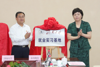 刘春华与朱华建共同为济南大学实践教学基地、毕业生就业实习基地揭牌。杨景波与毛明光代表双方签订《济南大学 泰山财产保险股份有限公司战略合作协议》;活动中,双方围绕合作内容进行了深入交流,并参观了山东省青年文明号——泰山保险电话中心等。