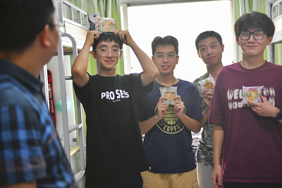 活动伊始,工作人员着装院服,细心布置好场地,签收月饼。活动期间,由各班班长和团支书统一领取以及确认相应的月饼,再分发给各班同学。月饼精致小巧,饼身印有济南大学的校徽,外包装也设计俏皮可爱。紧接着,袁海占书记和杜艳辅导员一起来到学生宿舍和集中隔离点,当面为真人棋牌