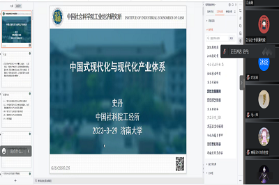 3月29日晚, 中国社会科学院工业经济研究所所长史丹受邀做客舜耕论坛,进行题为“中国式现代化与现代化产业体系”的学术讲座。本次论坛采取线上会议方式,济南大学社科处处长张守凤主持,校长刘宗明致辞,真人棋牌