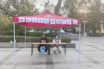 青年志愿者协会在舜耕校区经管楼广场举办“献礼二十大”文艺作品征集活动,广大师生积极参与。