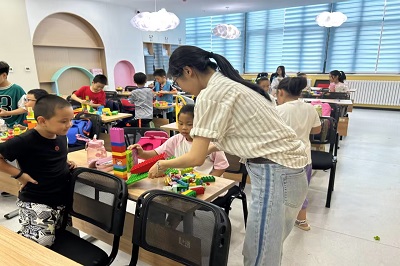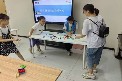 最后,在志愿者的协助下,小组成员通过乐高积木搭建瓷娃娃的梦想学校,并在结束时进行了分享。整个活动在欢声笑语中结束。