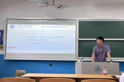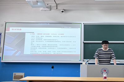 2021级会计专硕研究生杨晨同学成功“上岸”中共济南市长清区区委组织部,他在分享会上主要分享选调生“上岸”的经验,用一段视频帮助同学们进一步了解选调生是什么、做什么以及与国省考公务员的区别。接着介绍选调生的考试内容、报考条件,以及近年来各地区的分数线对比。同时,他针对各个题型对备考提出建议,并推荐相应的网课老师。最后他祝愿各位学弟学妹们都能成功“上岸”,找到心仪的工作。