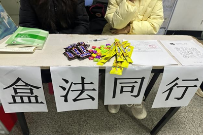 于11月28日在经管楼一楼大厅开展“‘盒’法同行,共创和谐法治校园”活动。