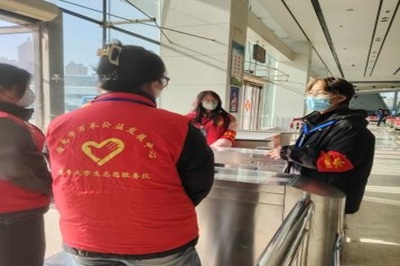 志愿者主要负责旅客引导:在车站入口、售票处、候车厅等区域为旅客提供路线指引、购票协助、秩序维护、特殊旅客帮扶(为老人、孕妇、残疾人等提供一对一服务,如搬运行李、优先检票等应急处理(协助⻋站工作人员处理突发情况,如旅客遗失物品、身体不适等),累计服务旅客超过1000人次,多次获得旅客感谢信封。车站工作人员对志愿者团队的工作效率和服务态度给予高度评价。