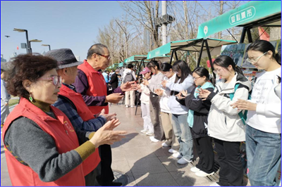 青年志愿者协会组织12名志愿者联合“兵妈妈”志愿服务队在泉城广场定期开展“一城大爱暖泉城”公益活动,通过防诈骗宣传、健康倡导及文艺互动等形式,为老年人送上关怀与温暖,吸引百余名市民参与。