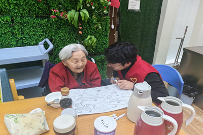 “这是我第一次尝试画小动物,没想到画出来这么有意思!”一位参与活动的老人笑着高高举起自己的作品,展现出极高的热情和自豪感。活动现场气氛欢乐且温馨,志愿者们不仅成功帮助老人完成了诸多绘画作品,更在与老人的交流互动中,倾听老人们的记忆故事,将陪伴与关怀悄然传递。