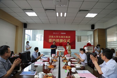 2021年签订的就业合作单位,目前济南大学有近200名毕业生在企业任职。集团公司副总经理李宝杰感谢学校为企业输送的生物学院刘善奎教授等科研力量,高度评价了学校的人才培养质量,期待更多优秀学生关注并加入到民营企业的发展蓝图中。张士强回顾了2020年走访企业的情况,探讨了校企合作冠名班的培养机制,指出学校将立足“三实一强”应用型人才培养目标,破立并举加强科技合作,谋划国家奖等标志性成果,助力企业总体战略布局的实现。校友代表感谢学校的谆谆教诲,汇报了在企业的成长与感悟。随后,张士强一行参观了鲁南制药集团展览馆、时代楷模赵志全同志纪念馆。