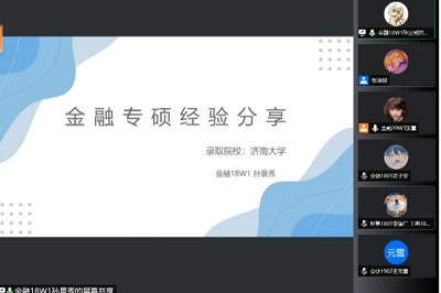 第一场,由学硕上岸的同学从选择院校、选择专业以及学习方法三个方面进行了分享,依次分享择校择专时信息查询方法以及关注要点,并着重将数学篇分为了基础、强化、冲刺三个阶段,为考研同学在数学方面的补弱加强提供了有效的借鉴。第二场中,专硕录取的同学们从英语二、政治、396经济类综合、金融学综合四项考试科目入手,从每一科的复习规划到学习材料的搜集进行了详细介绍,使考研同学能更充分地备考。第三场中,跨专业考研上岸的同学从为什么以及怎样跨专业两个方面来介绍了自己的跨专业考研历程,增强了想要跨专业考研同学的信心。
