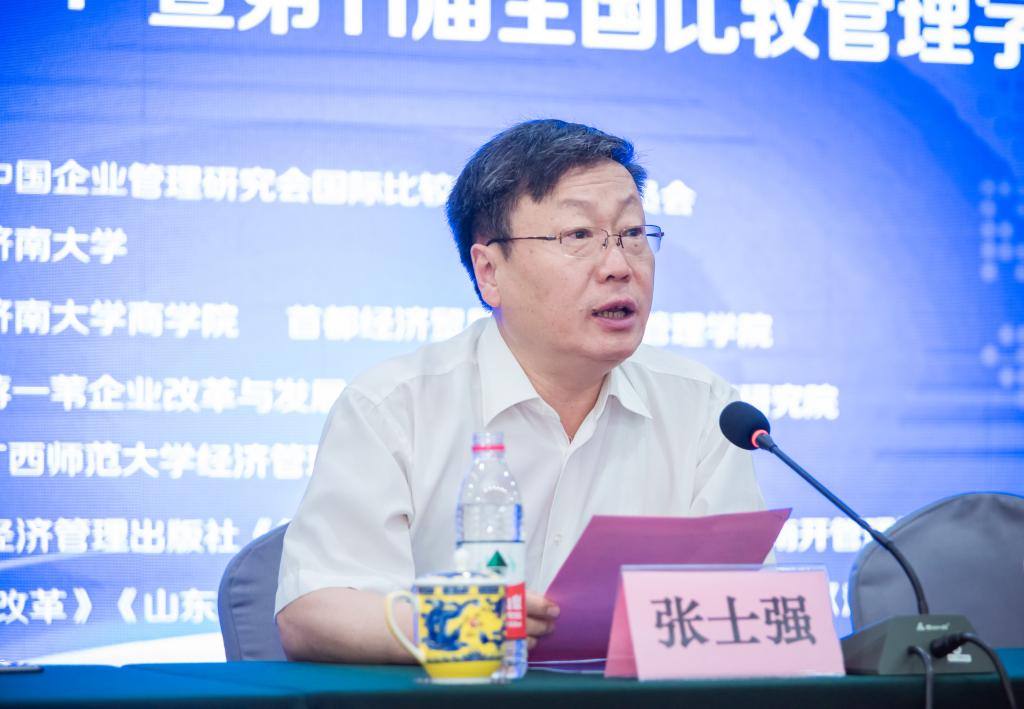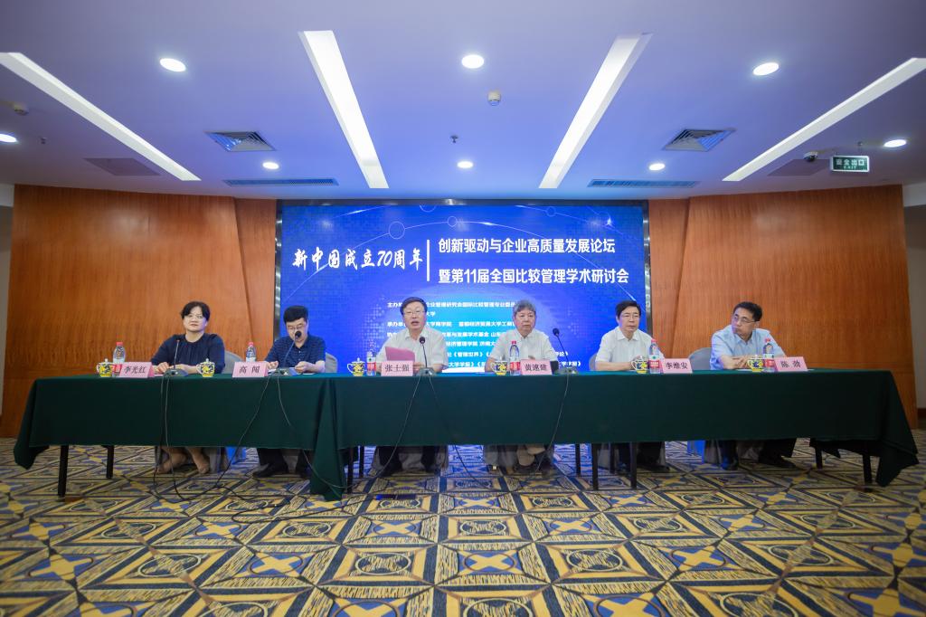 、首都经济贸易大学工商管理学院联合承办的“新中国成立70周年:创新驱动与企业高质量发展论坛”暨第十一届全国比较管理学术研讨会,在我校举行。来自中国社科院、清华大学、同济大学、南开大学、中央财经大学、山东大学、首都经济贸易大学、天津财经大学等50余所高校的专家学者,管理世界、新华文摘、中国工业经济、南开管理评论、改革等国内顶尖或知名学术期刊的总编、编辑,浪潮集团、济南二机床集团等企业家代表,以及济南大学部分师生共240余人参加了会议。会议分为“开幕式”、“第一阶段主题演讲”、“第二阶段主题演讲、企业家论坛”、“第三阶段主题演讲”、“高水平论文工作坊”以及“薪火相传、闭幕式”等六个部分。