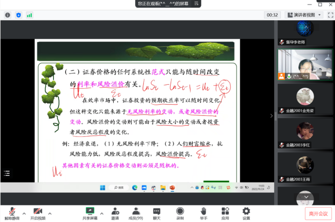 各位老师认真总结了之前线上教学的经验,能够更加顺利的完成线上教学活动,充分发挥了在线授课的优点,能结合课程特点灵活运用各具特色的数字化教学工具辅助教学,网络课堂体现了浓厚的学习气氛,保证了学生能持续接受高质量培养,保质保量推进了教学进度,体现了以学生为中心的教育理念和人文关怀,为共同度过当前时期做出了积极贡献。其中,王晓武老师组织学生充分发挥网络课堂互动特征,课堂气氛热烈,学生收获感强;张伟老师的课案例鲜活,贴近学生,能够激发学生的强烈兴趣与共鸣,同时理论讲授深入浅出,课堂效果优秀;高文玲老师注重过程化考核,学生参与积极,教学工具灵活多样。像这样的优秀老师数不胜数,每位老师都用自己的教学热情温暖了寒冬里的课堂,激活了一颗颗年轻的心灵。