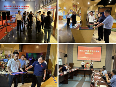 与山东迈宝赫健身器材有限公司签署就业实习基地协议,李强和宋光林为“济南大学就业实习基地”揭牌。