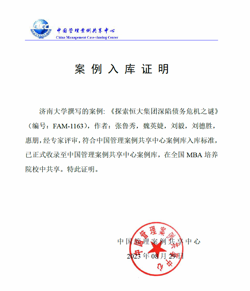 近日,我院张鲁秀教授团队撰写的案例《探索恒大集团深陷债务危机之谜》、《机会与风险同在,美的跨国并购库卡》已正式收录至中国管理案例共享中心。
