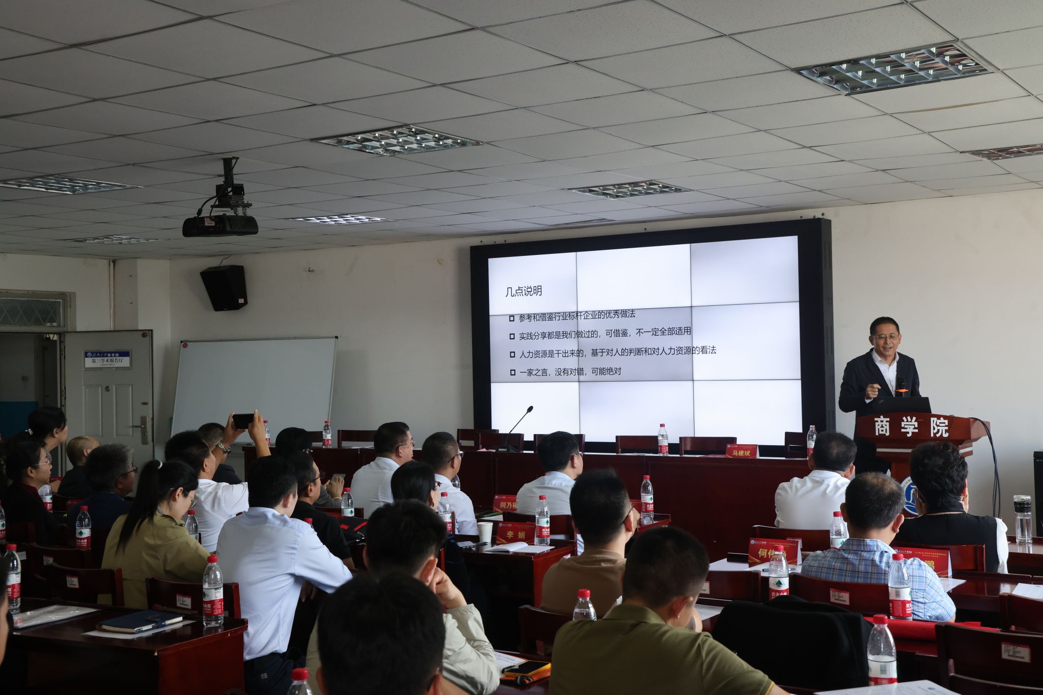 9月21日上午,诚通人力资源公司高级咨询顾问经理马建斌在舜耕校区经管楼615教室为部分MBA校内外导师和2024级MBA新生做了题为“人力资源管理的基本思考与认知”的专题报告。MBA中心主任朱瑾主持。