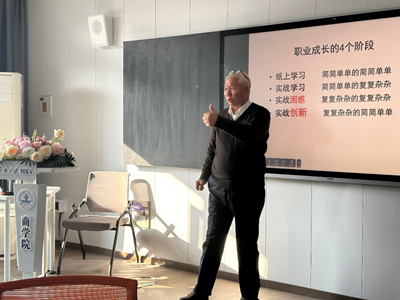 邀请中信银行舜耕路支行原行长王军生为MBA学生传授《职业价值观与职业生涯规划》讲座,旨在帮助学生们对未来职业有一个清晰的认知,并制定出科学的发展规划。MBA中心主任朱瑾主持了活动。